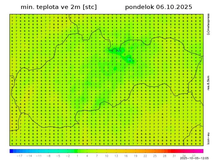 Obr. 4: Predpoveď minimálnej teploty podľa modelu ICON.