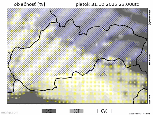 Oblačnosti bude v noci na sobotu pribúdať. Zrána bude prevažne oblačno až zamračené. Ojedinele sa vytvorí v dolinách a kotlinách aj hmla. V priebehu dňa sa oblačnosť bude naopak miestami čiastočne zmenšovať.