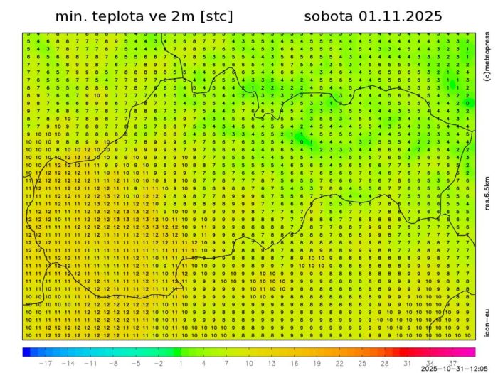 Obr. 2: Minimálna teplota podľa modelu ICON.