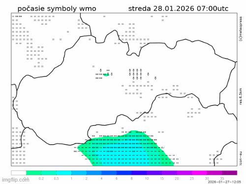 Spočiatku bude na území Slovenska miestami hmlisto, lokálne aj s drobným mrholením a tvorbou poľadovice. V priebehu dňa zostane prevažne oblačno až zamračené a od juhu začne k večeru na viacerých miestach pršať, od stredných, prechodne aj v nižších polohách snežiť.