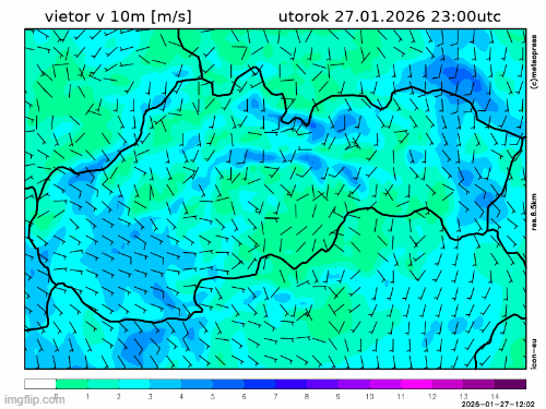 Vietor bude prevažne juhovýchodný až južný, neskôr až východný s priemernou rýchlosťou do približne 25 km/h.