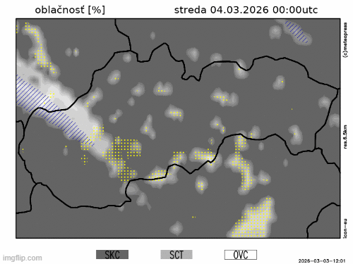 Obr. 2: Predpokladaný vývoj oblačnosti na Slovensku v stredu (4. 3.) podľa modelu ICON-EU