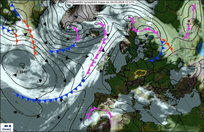 Obr. 1: Synoptická situácia – streda (4. 3.)