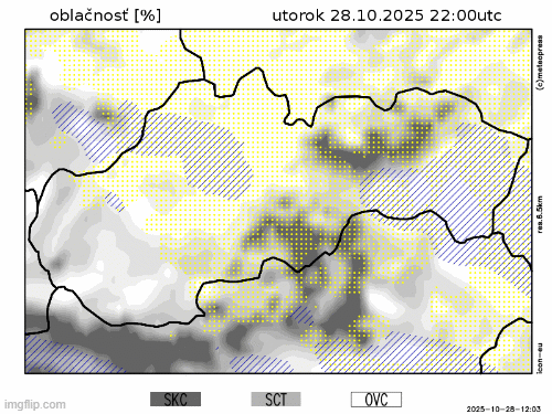 Spočiatku bude veľká oblačnosť až zamračené a miestami bude pršať, od výšky asi 1400 m n. m. snežiť. V priebehu dňa sa oblačnosť bude postupne miestami rozpadávať. Zrána očakávame ojedinele hmlu alebo nízku oblačnosť.