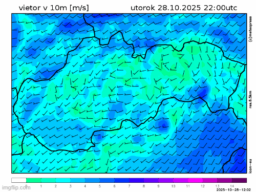 Vietor sa zmení zo západného na južný s priemernou rýchlosťou do 30 km/h.