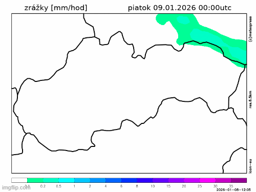 Obr. 2: Predpokladaný vývoj zrážkovej činnosti na Slovensku v piatok (9. 1.) podľa modelu ICON