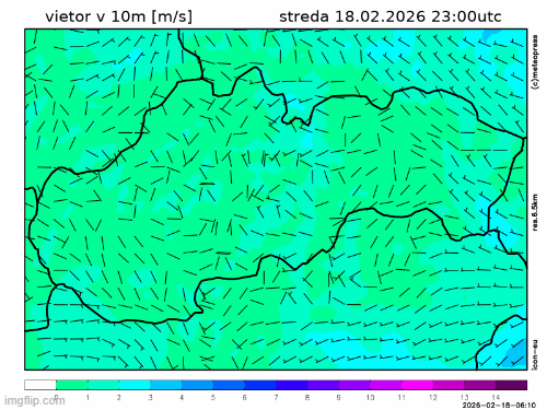 Prúdenie vetra bude východné až juhovýchodné s priemernou rýchlosťou do 15-30 km/h.