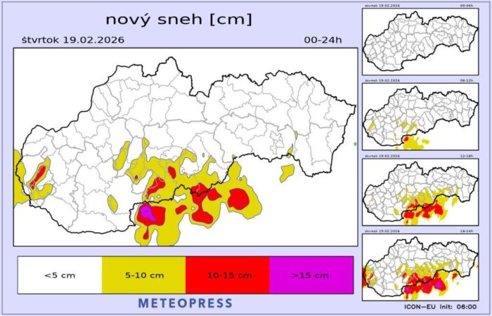 Výstupy sa zo dňa na deň menia, ale modely sa zhodujú na najväčšom prírastku snehu v Banskobystrickom kraji a na krajnom juhozápade.