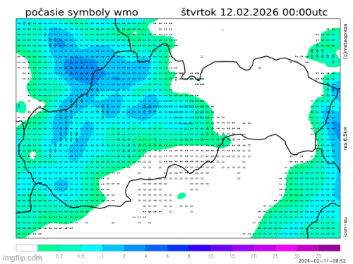 Obr. 1 Synoptická analýza na štvrtok 12.2.2026. Zdroj: ČHMÚ.