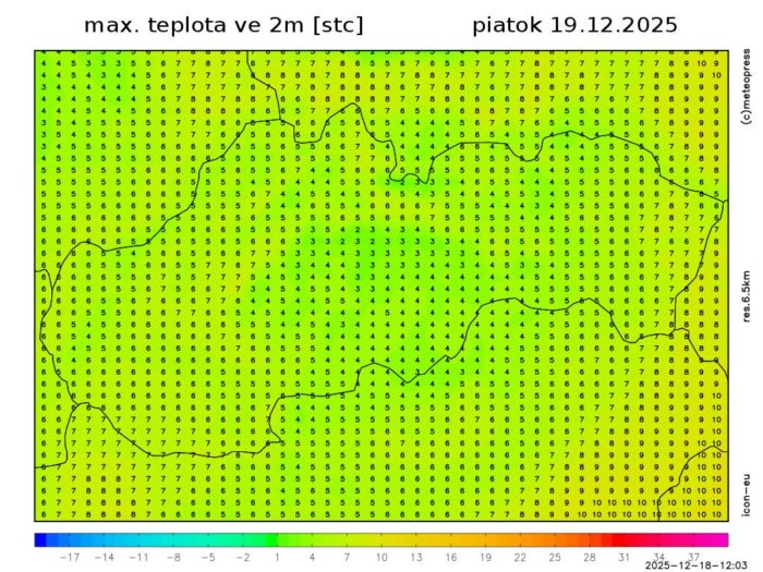 Obr. 4 Maximálna denná teplota podľa modelu ICON-EU.