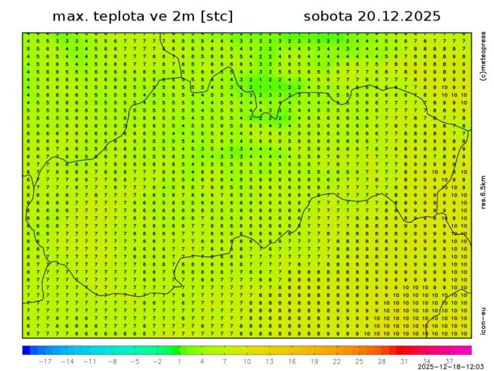 Obr. 8 Maximálna denná teplota podľa modelu ICON-EU.